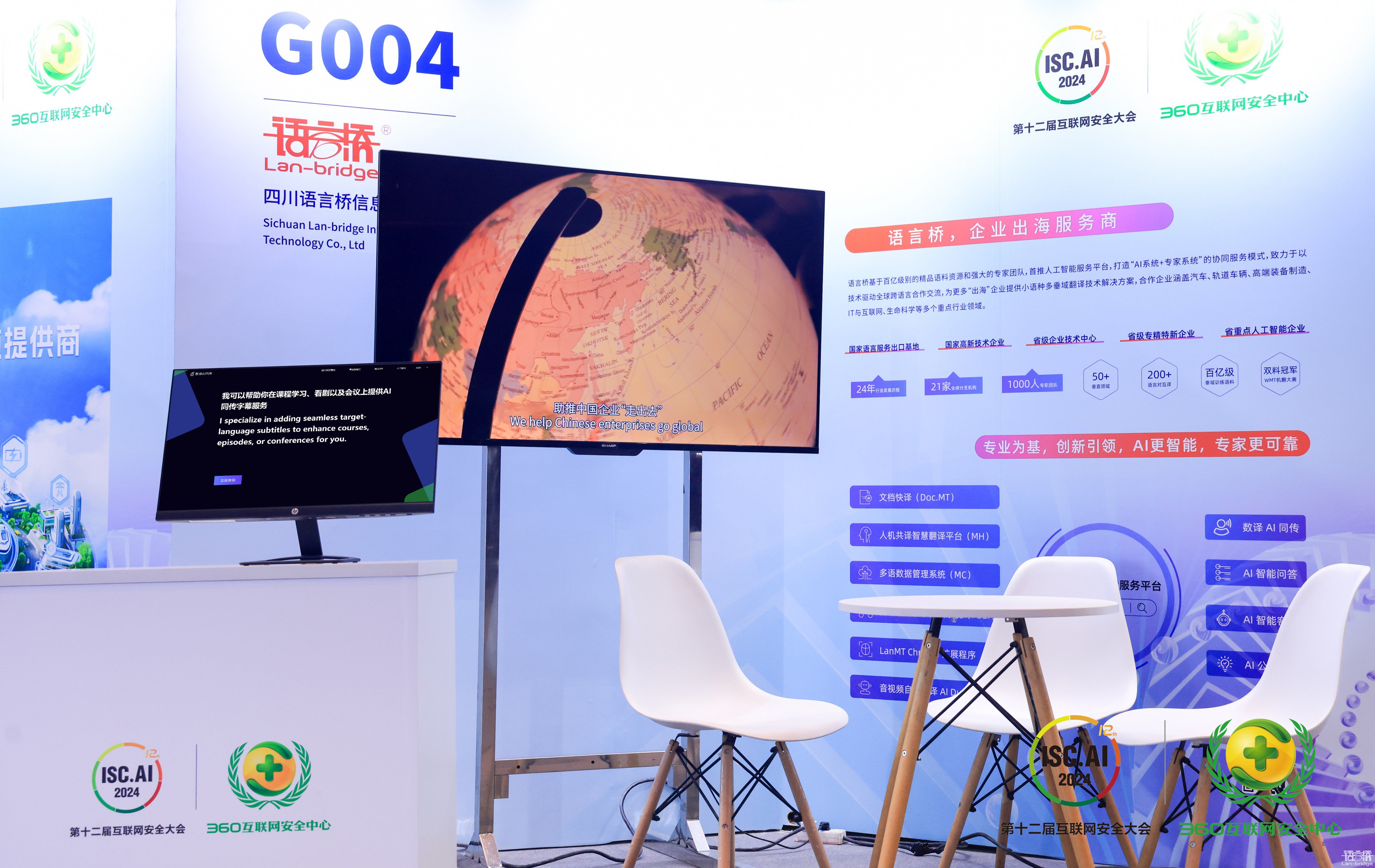 本屆大會語言橋集團攜旗下新一代輕量化文檔翻譯工具與實時字幕同傳兩款 AI 智能應用產品亮相ISC.AI 2024。