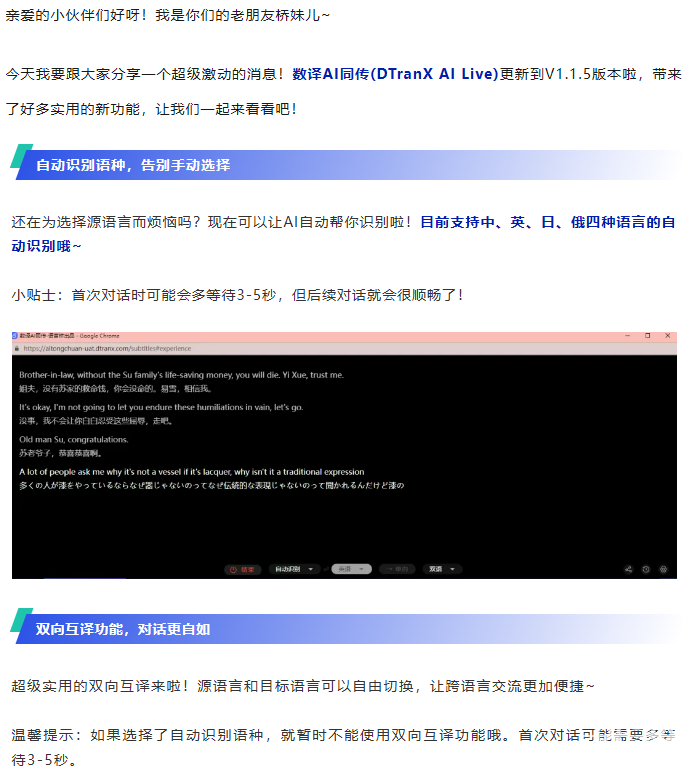 "數譯A同傳又雙叒愛更新啦!上周四我們發布了最新的V1.1.4版本。本次更新帶來了多項實用功能,讓橋妹兒帶大家一起來看看吧~ "...[查看更多]